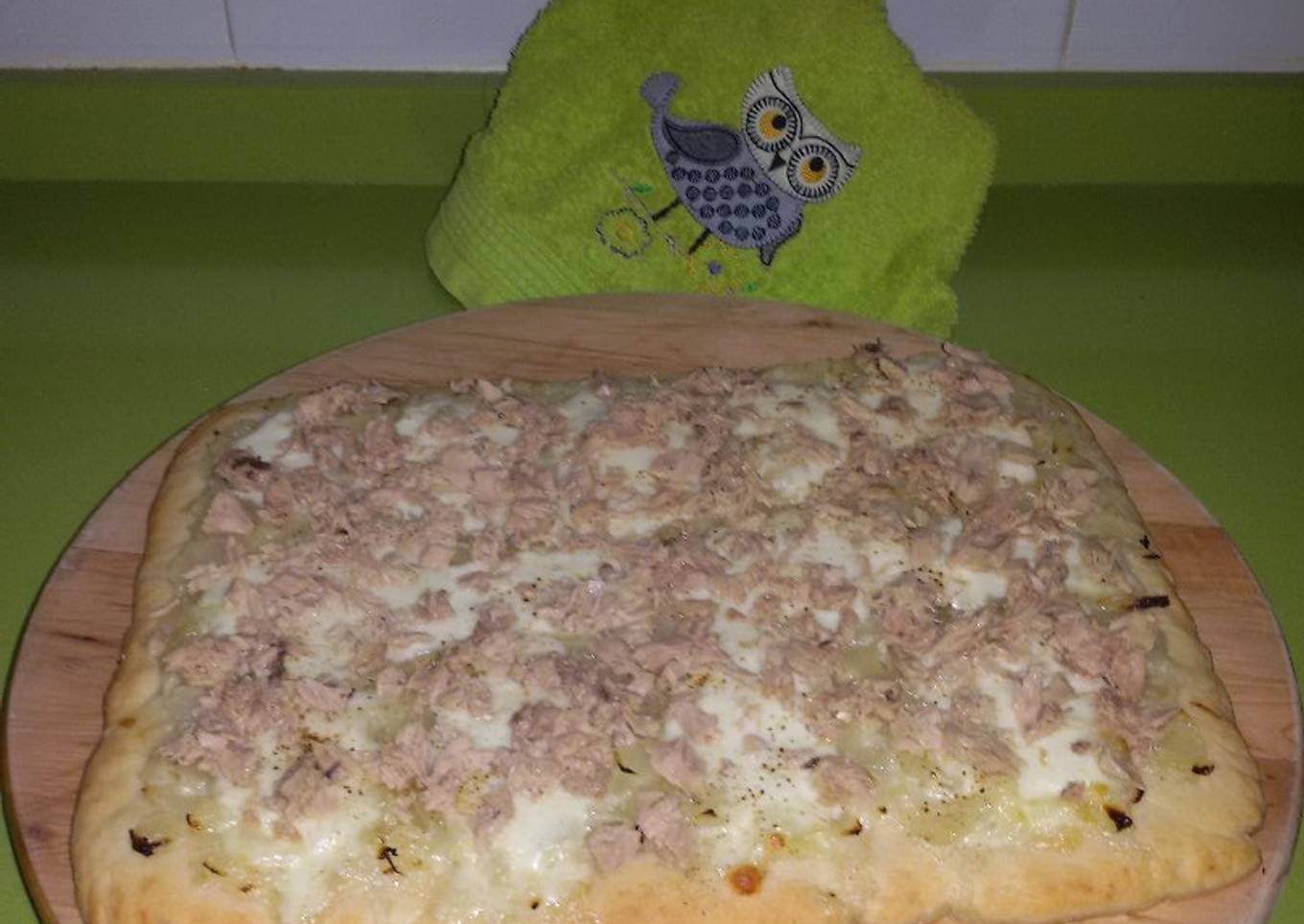 Coca de cebolla, mozzarella y atún con thermomix