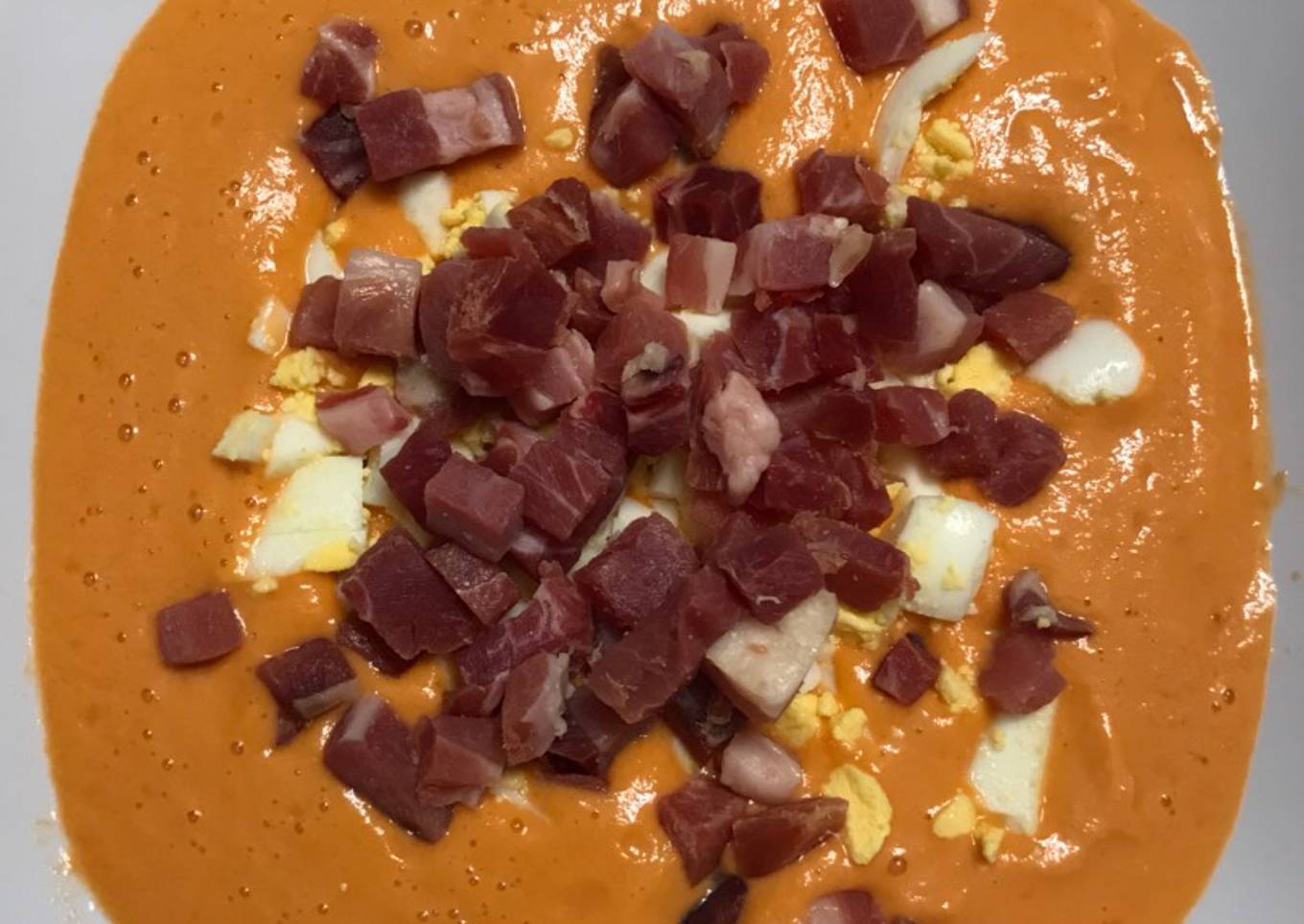 - Listo para servir. Añadir el jamón serrano y el huevo duro al gusto.