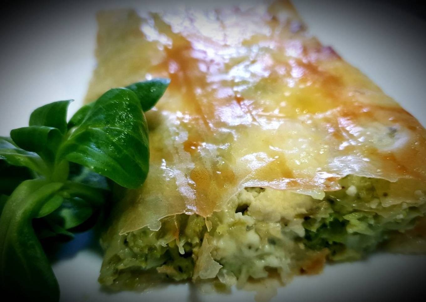 - Unta con aceite con pincel aceite por la hoja de pasta filo, pon la verdura y trocitos de queso y cierra.