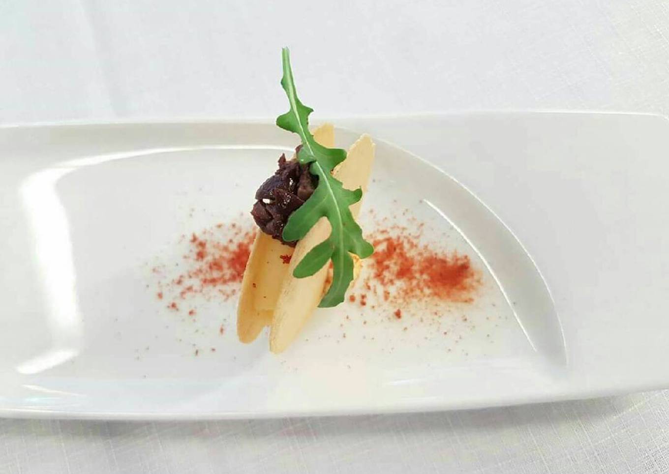 Galleta de queso manchego, azafrán y aceituna de cuquillo