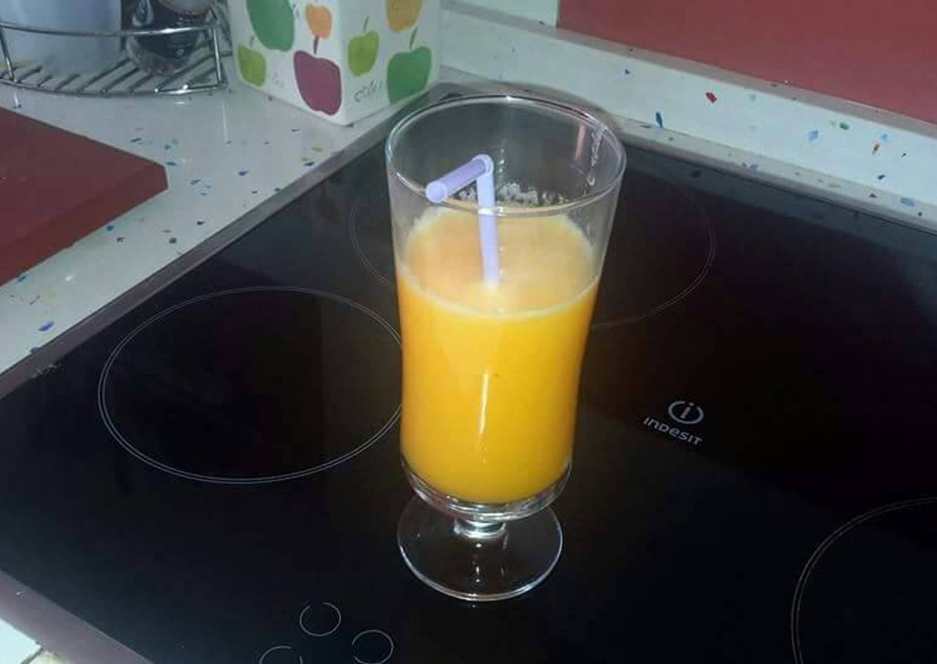 - Ponemos el resto de cubitos de hielo en una jarra, vertemos el zumo multivitamínico en ella y lo podemos servir.